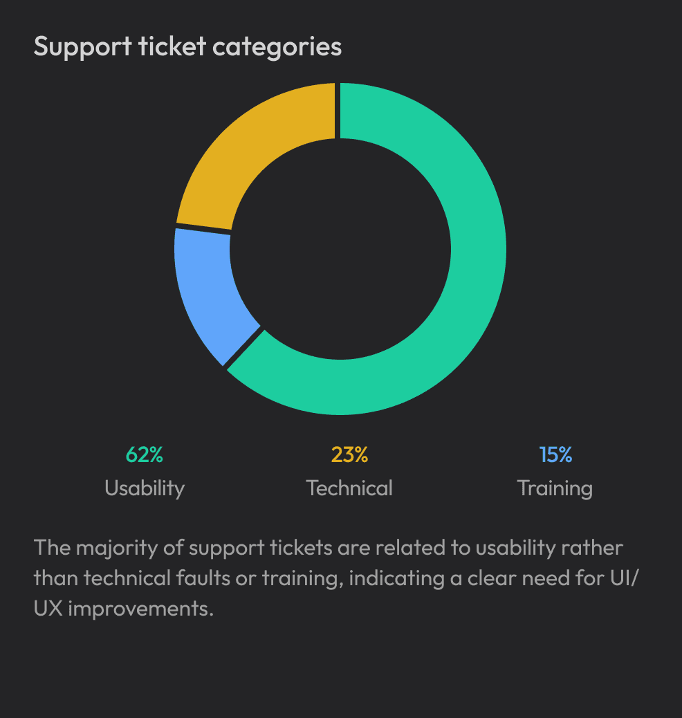 Many support tickets were usability-related, not technical failures.